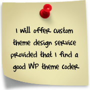 After much thoughts, I figure that if I accept custom theme jobs, I won’t be able to release 4 quality free themes a month unless I hire a good coder to help me out. With that said, I would have to put in some time with the coder to ensure my themes adhere to the high standard as usual.