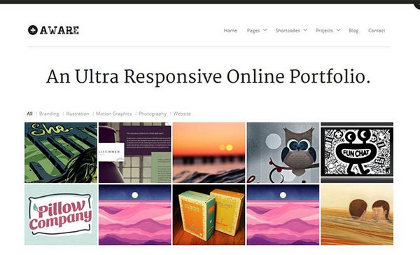 Aware is a responsive WordPress theme that is a great solution for web designers, freelancers, videographers and photographers. Aware is stacked with a long list of features including responsive design, top panel drawer, 1 click shortcodes, 5 custom widgets, Ajax homepage portfolio and several theme options.