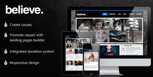 Believe is a feature rich responsive WordPress theme that is appointed with a plethora of features including 8 custom widgets, shortcode compatible, detailed documentation, Google Analytics, responsive design, WordPress 3.0+ ready, Layered PSD files for customization, Import demo data with just one click and a choice of multiple color schemes.