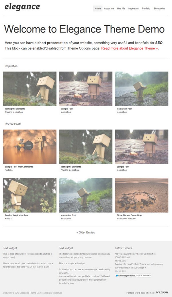 Elegance responsive WordPress theme boasts a great layout, beautiful typography and is available with a ton of features including custom widgets and menu, and a powerful themes options panel.