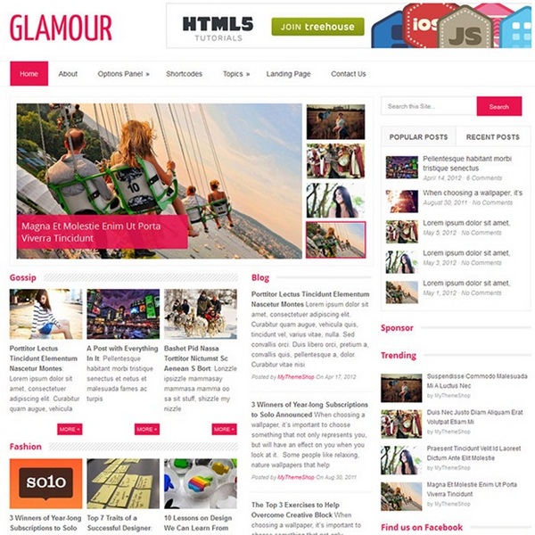 Glamour is a magazine style WordPress theme that features a multi column homepage display, and allows visitors to browse through your content the way they want. Its responsive layout allows it to be rendered on any screen size, resolution or device, and is tagged with a host of features including shortcode compatibility, powerful options panel, unlimited Google fonts, translation ready and Adsense and SEO optimized.