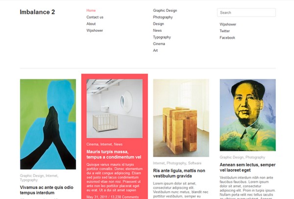 Imbalance 2 is a WordPress responsive theme that is able to transform your bland blog/website into something that is sure to leave your visitors in awe and envy. Its unique features include custom homepage, fluid and fixed layout types, 2 types of pagination, 2 types of content presence and a robust theme options page.