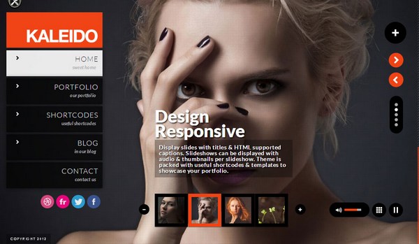 Kaleido responsive WordPress theme is designed exclusively for creative agencies and professionals. The theme is tagged with a ton of features including theme options, shortcode generators, Google font selectors, password protected pages, single post with sidebar, fullscreen slideshow controls, Vimeo fullscreen video and multi color options.