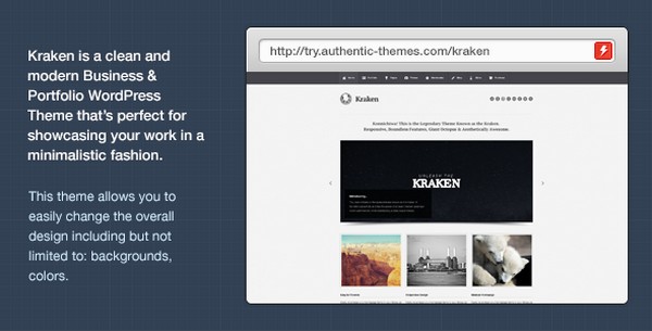 Kraken is a versatile and vivid business oriented responsive WordPress theme that is perfect for showcasing your creative in the most elegant way. kraken for WordPress comes with an extensive list of features including 2 photo gallery page templates, 3 portfolio types, social bookmarking links, right or left sidebar option, widgetized bottom bar, and detailed documentation.