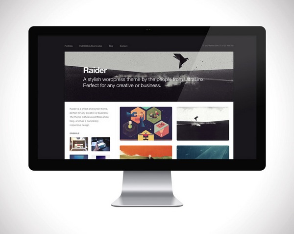 Raider is an excellent responsive WordPress theme for any blogger or any business oriented individual and comes with a host of features including customizable headings color, contact form, drag and drop interface for pages, posts and portfolio items, responsive design, Google Analytics enabled, widget support and color picker for customizable options.