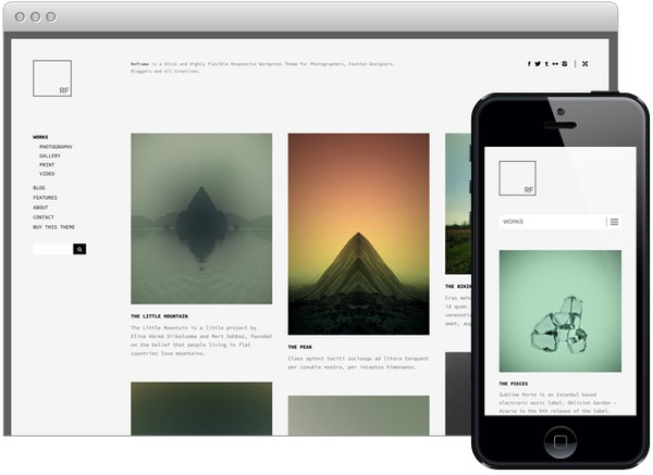 Reframe is a vivid and highly customizable WordPress theme that features responsive design and comes with a ton of features including 3 different skin presets, flexible project layout, two main layouts, custom post type generator, sliders, post formats, 500+ Google Fonts, localization support and shortcodes.