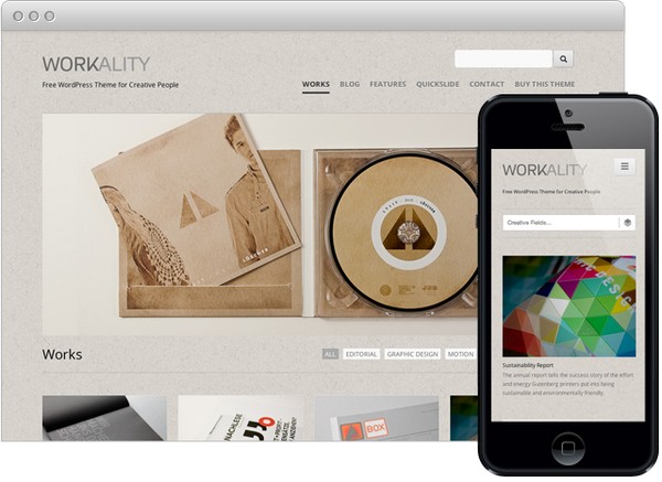 Workality Lite is a fully responsive WordPress portfolio theme that is absolutely free to use, and surprisingly with a long list of features including 4 portfolio layouts, custom post types, responsive design, localization support and archive + 404 pages.