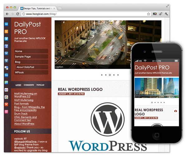 Daily pro is a highly customizable and fully responsive WordPress theme that can be virtually any screen size, resolution or device. Some of its features include stylish post formats, Nivo slider, clean ode, frequent theme upgrades, share buttons, Twitter widget and gravatar ready.