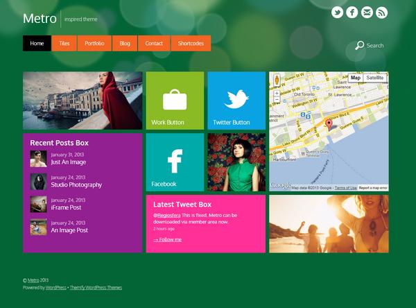 Metro is clean and Windows 8 inspired fully responsive theme for WordPress that is great for anyone who like to display their work with no distractions. Some of the themes features include responsive layout, custom navigation menu, auto stacking layout, social media icons, infinite scroll and paged navigation, list and grid view, custom footer text and child theme support.